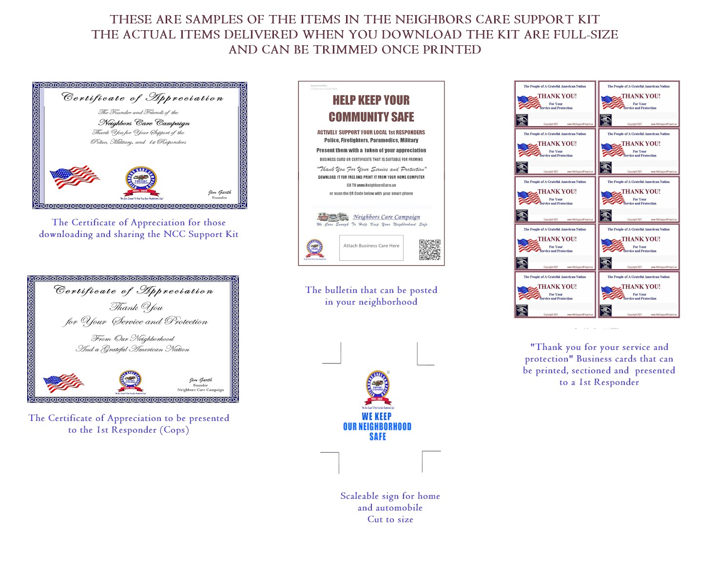 "Thank You For Your Service and Protection" Neighbors Care Support Kit© Copyright 2021 James J. Garth All Rights Reserved